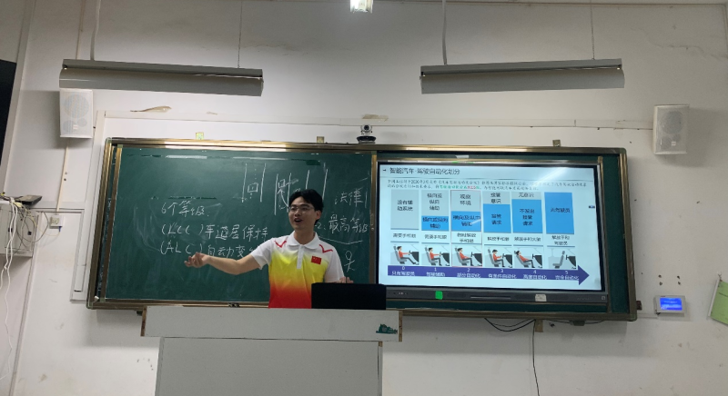 此次公开课包括理论宣讲和技能展示环节。在理论宣讲环节,支教团李林欣详细介绍了智能交通系统和智能汽车发展现状和未来趋势,深入浅出讲解了信息通信、互联网、大数据、云计算和人工智能等新技术给未来出行带来的变革,普及了智慧交通、智能驾驶和绿色出行等知识和理念。在技能展示环节,支教团倪春旭现场讲解和操作智能小车的自动驾驶,带领同学们开展智能车视觉巡线、交通标志辨识、测距避障和图形化编程等互动体验活动。