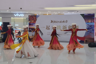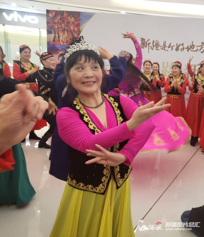 石榴云/新疆日报讯(记者 阿比拜 报道)3月23日下午,杭州微风徐徐,小雨绵绵。杭州市拱墅区万达广场中庭与室外“江南烟雨”柔美不同,这里处处洋溢着欢快的“新疆味道”。来自杭州市文化馆的200多名新疆舞爱好者正在这里开展“一起来跳新疆舞”进广场联谊活动。