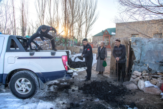 1 月 31日,琼博拉边境派出所民警为群众送来“暖心煤”。通讯员 王鹏飞摄