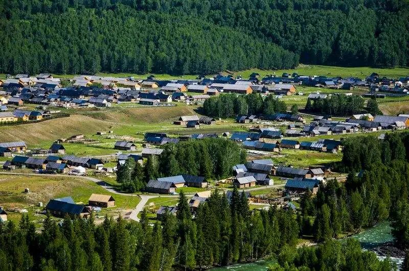 在美丽多彩的喀纳斯湖旁,静静地躺着一个古朴的山村——禾木村。这里有成片成片如油画般的桦林、蜿蜒流转的小河、古色古香的木屋,宛若一座童话镇。