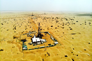 大漠深处的富满油田井架林立。(中国石油塔里木油田公司供图)