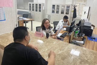 2022年8月5日,自治区劳动保障监察总队工作人员在举报投诉窗口为来访群众解答农民工工资保障有关政策法规。 马思宇摄