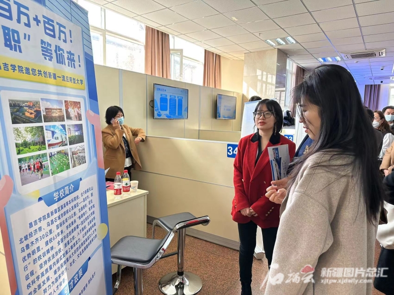 3月29日,我区2023年春季面向高校毕业生人才引进首场招聘会现场,求职者了解用人单位岗位需求。石榴云/新疆日报记者 赵春华摄