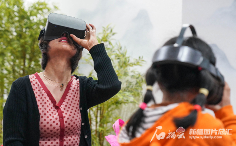 2月23日下午,乌鲁木齐市天山区新时代文明实践中心,家住幸福路街道的范瑛和小朋友一起用VR体验浩瀚星空。她说感觉很不错,打算周末带自己孩子也来参加科普活动。石榴云/新疆日报记者 王琦铭摄