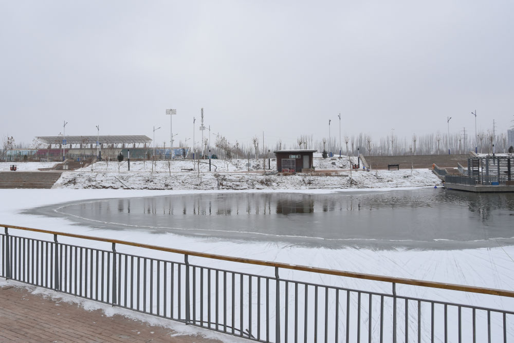 拉齐尼·巴依卡勇救落水儿童的湖面。(2021年1月5日新华社记者张曼摄)