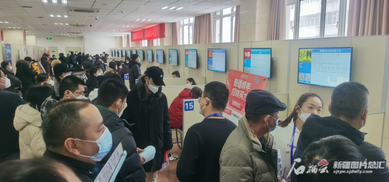1月10日,自治区2023年“就业援助月”启动仪式暨吐鲁番市现场招聘会上,求职者与招聘单位洽谈(资料图)。自治区公共就业服务中心供图