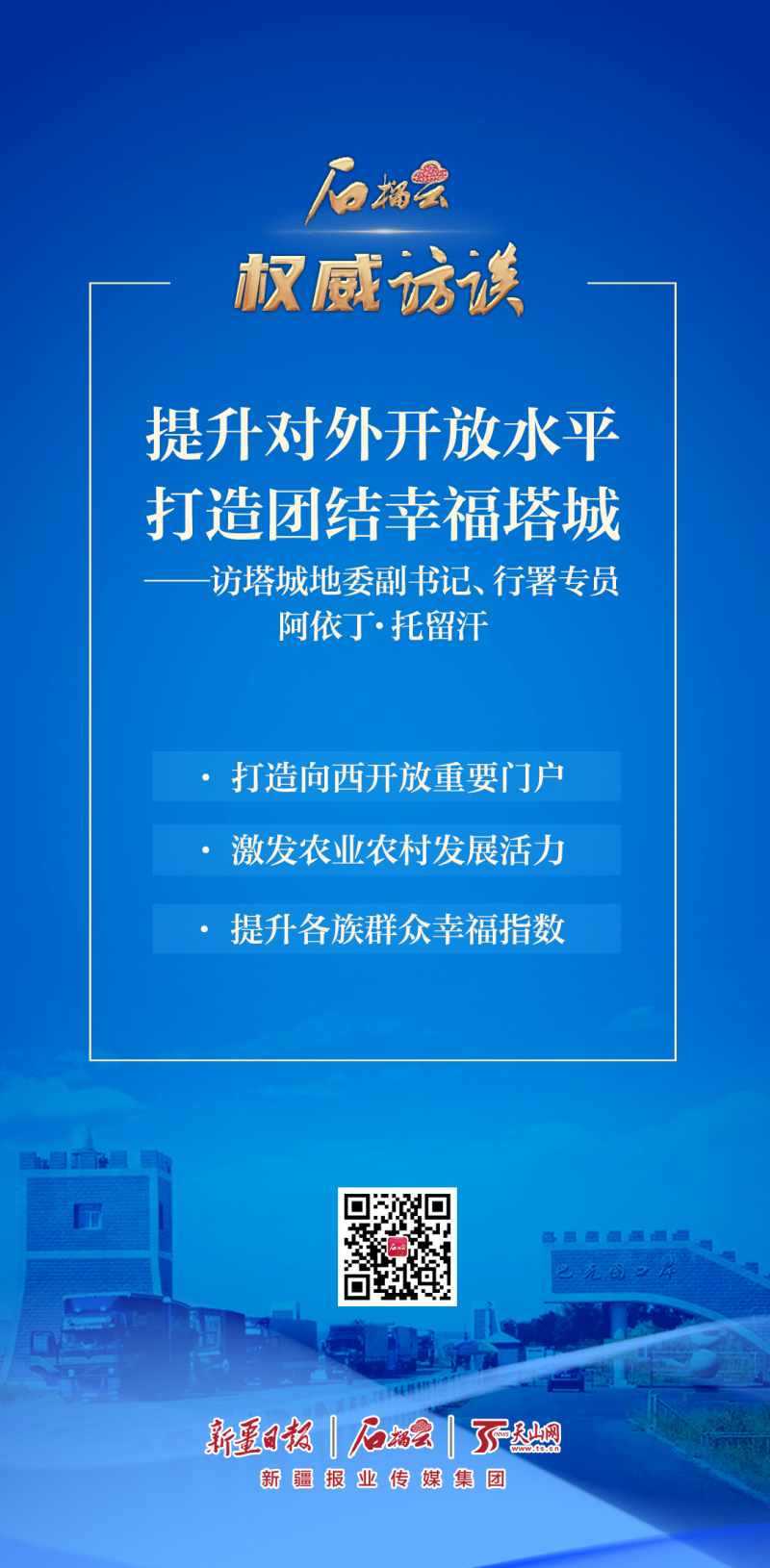 回顾2022年,在自治区党委的坚强领导下,塔城地区攻克了许多长期没有解决的难题,办成了许多事关长远的大事要事,收获了许多令人鼓舞的荣誉,美好塔城建设取得新成绩、迈出新步伐。2023年是全面贯彻落实党的二十大精神开局之年,作为丝绸之路经济带新疆境内中通道和北通道的一个重要交汇点,塔城地区将如何开启新征程、谱写新篇章?2月9日,记者采访了塔城地委副书记、行署专员阿依丁·托留汗。