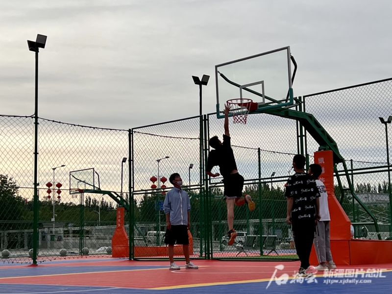 乌鲁木齐持续提升夜间经济品质和活力,图为在会展星天地的星光球场开设了篮球与足球两个运动场所,满足公众休夜间休闲体育的新需求。资料图
