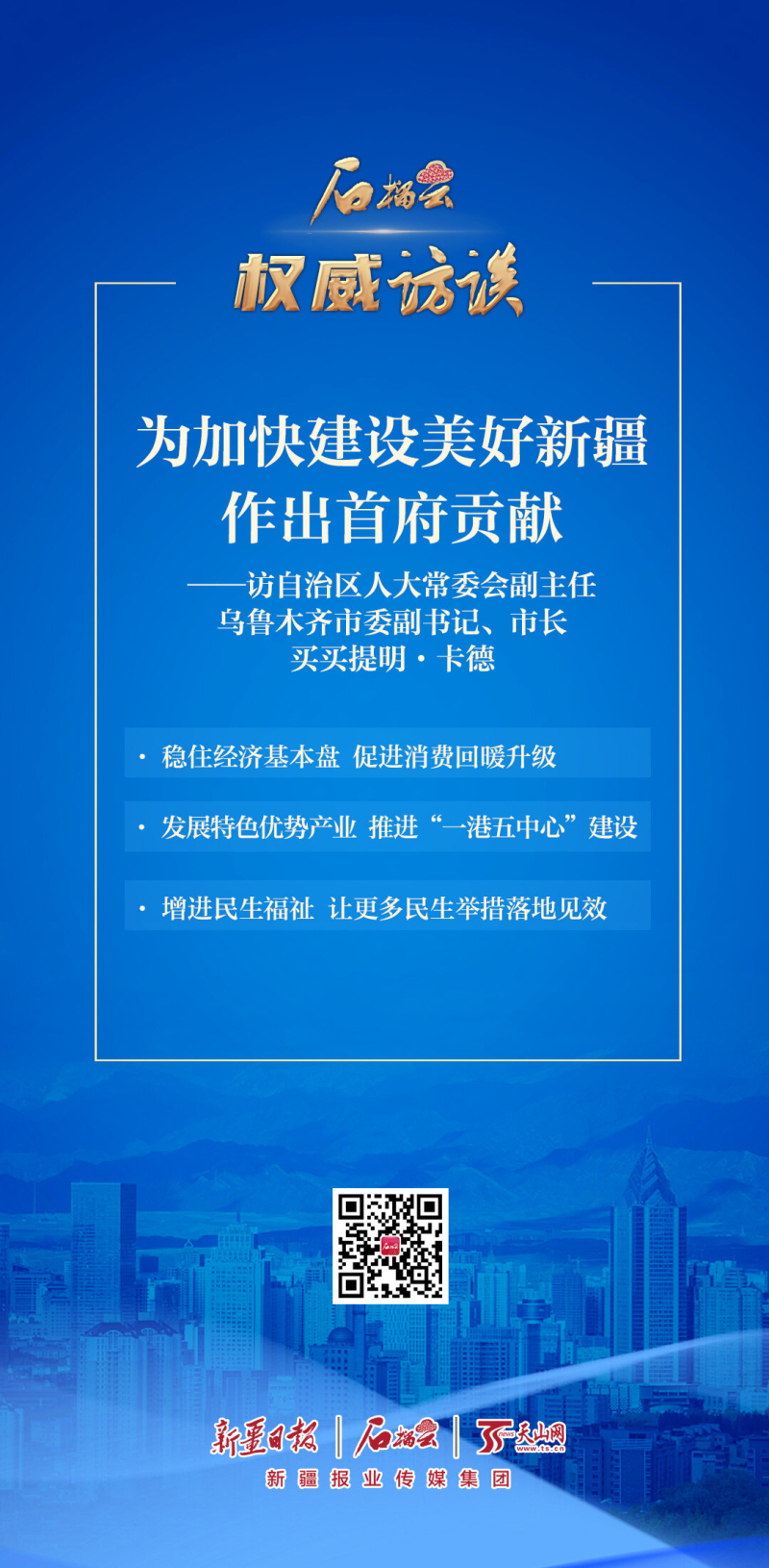 “今年是全面贯彻落实党的二十大精神的开局之年。乌鲁木齐将坚定信心、埋头苦干、真抓实干,促进经济实现质的有效提升和量的合理增长,确保一季度‘开门红’、力争‘全年红’,努力推动高质量发展实现新跨越,为加快建设美好新疆作出首府贡献。”买买提明·卡德说。