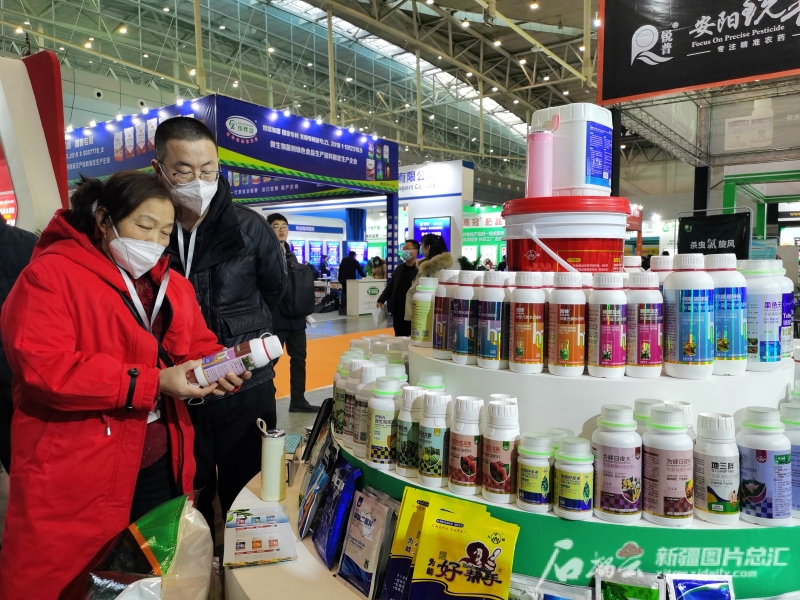 展会上,种植户了解参展商展示的农资产品。石榴云/新疆日报记者 逯风暴摄