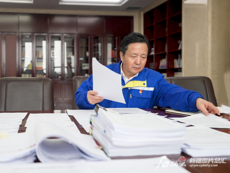 2月20日,特变电工总部办公室里,全国人大代表张新正在对即将带去全国两会的建议做梳理和修改。石榴云/新疆日报记者石鑫 摄