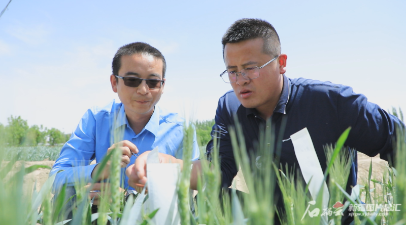 逄子剑(右)在田间地头工作。图/自治区团委提供