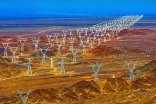 哈密—重庆±800千伏特高压直流输电工程起点——巴里坤换流站外的输电铁塔(资料图)。金炜摄