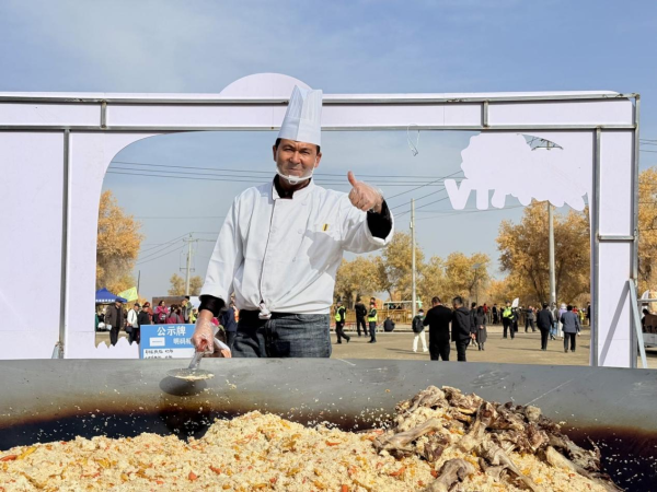 美食区的抓饭热腾腾的出锅。
