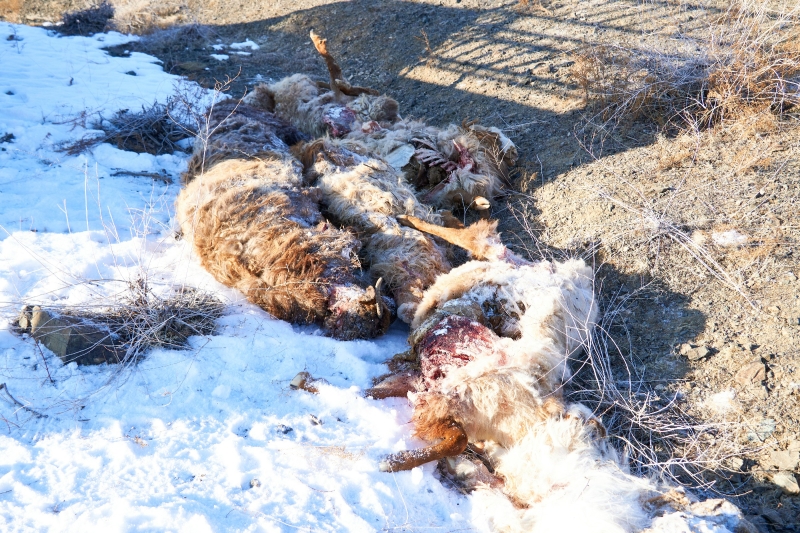 在约定好的汇合点,牧民已经将被害的12只羊搬运到指定位置。托里县自然资源局野生动植物保护管理办公室主任吉丽告诉记者,狼主要是以袭击羊的脖子或尾部为主,现场这些羊都符合这些特征。