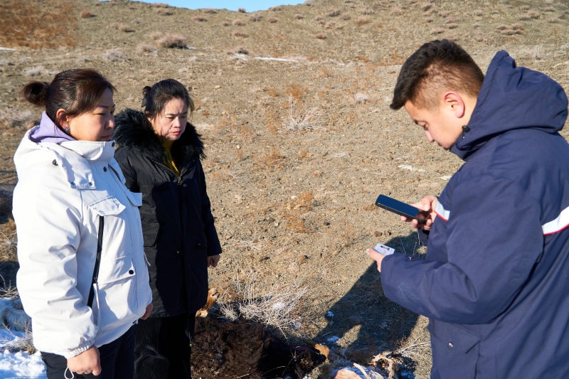 12月29日,记者和托里县自然资源局、人保财险工作人员一同深入牧区查验。