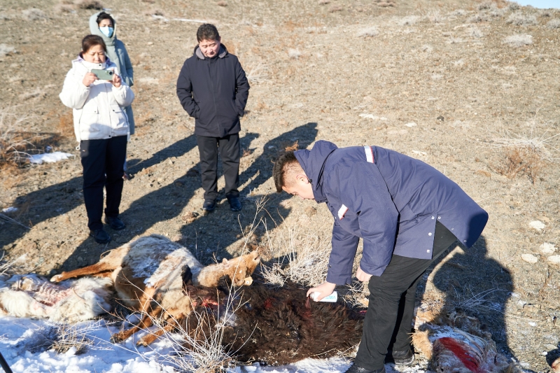 “我家的羊群被狼袭击,已经咬死两只了”“别着急,我已经把情况上报给自然资源局,明天他们就和人保财险的工作人员来查看”,12月28日,中国人民财产保险股份有限公司(简称:人保财险)托里支公司工作人员接到庙尔沟镇登格克村4户牧民报案,称自家羊被狼咬死,需保险公司工作人员出现场查验。
