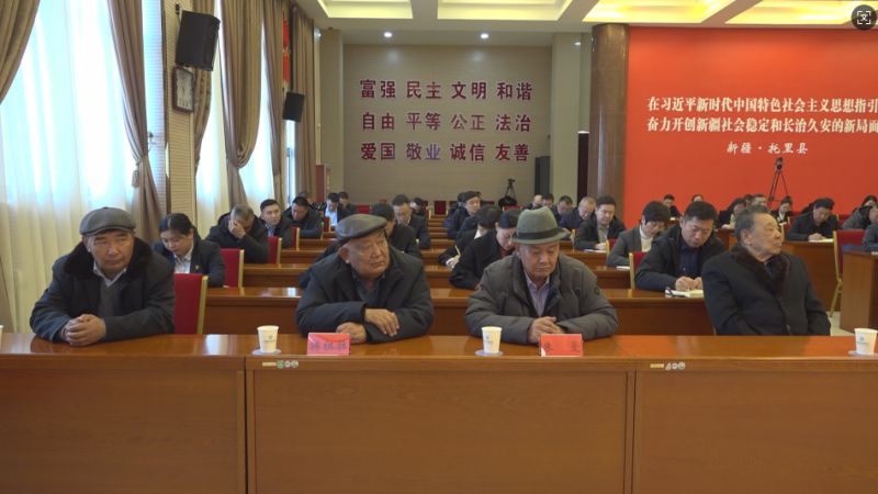 会议以视频的形式召开,王拥军、赛力克·尔斯别克、海若拉·巴吾丁等县四套班子在家领导,法、检两院主要负责同志;县处级离退休老干部;县委各部、委,县各委、办、局、人民团体,各垂直管理单位、县国有企业主要领导在主会场参加会议。各乡(镇)党政班子成员,各村(社区)党支部书记、主任,驻村工作队第一书记在分会场参会。