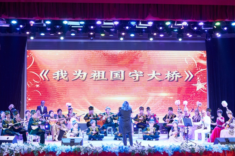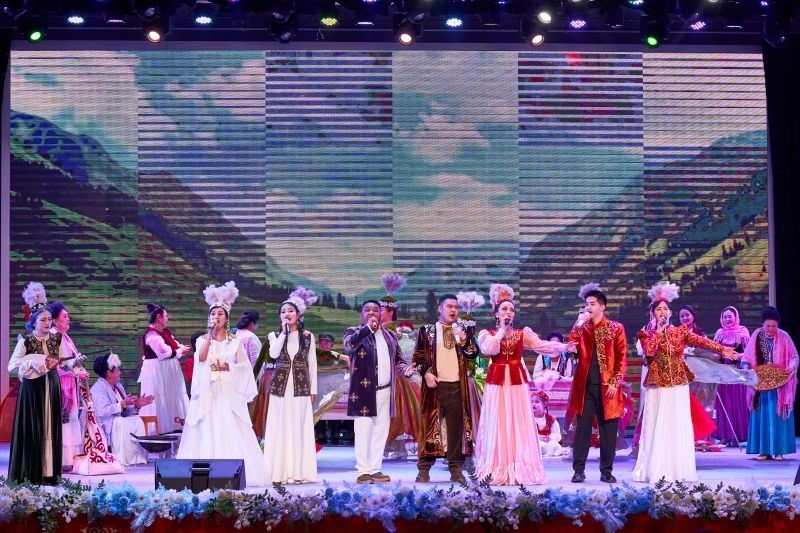 音乐会在大型歌舞《春天的羽翼》中拉开序幕,器乐合奏表演、合唱、歌曲、歌伴舞、冬不拉弹奏等精彩节目轮番上演,赢得了现场观众的热烈掌声。