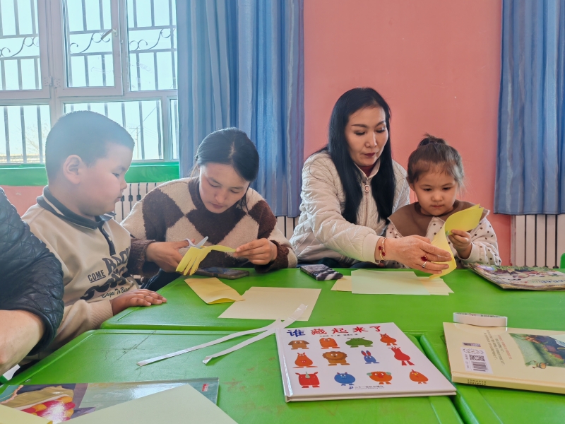 喀拉桥克幼儿园副园长哈力努尔·阿斯哈提说:“让孩子和父母一起做艾草煮鸡蛋蛋、制作小雏菊,增进了亲子间的互动交流,也让爱国情怀在孩子们幼小的心灵中生根发芽 。”