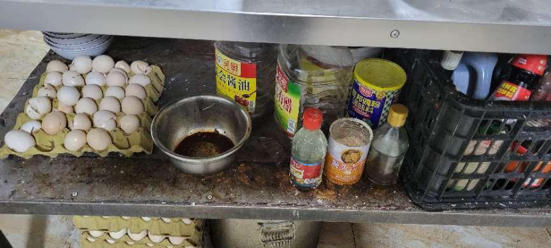 上榜理由:从业人员未建立日管控、周排查、月调度制度;未建立食品安全管理制度;经营场所环境卫生差;餐厨垃圾桶未加盖;通风排烟设施油污重;餐具消毒设施未连接电源,未正常使用;食品原料未分类摆放、生熟未分开、没有明显的标识。