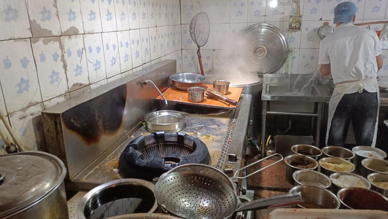 上榜理由:经营场所环境卫生不达标;后厨物品未按规定分类分区进行摆放;地面、墙面油污未定期处理;无明显标识;从业人员未持有有效合格的健康证明从事餐饮服务活动;后厨操作间排水沟堵塞,未定期疏通及清理;食品原料未离地存放,未分类摆放散装食品未使用密闭容器储存;冷冻柜生熟未分离存放;餐饮具未存放在保洁柜内,柜内有其他物品。
