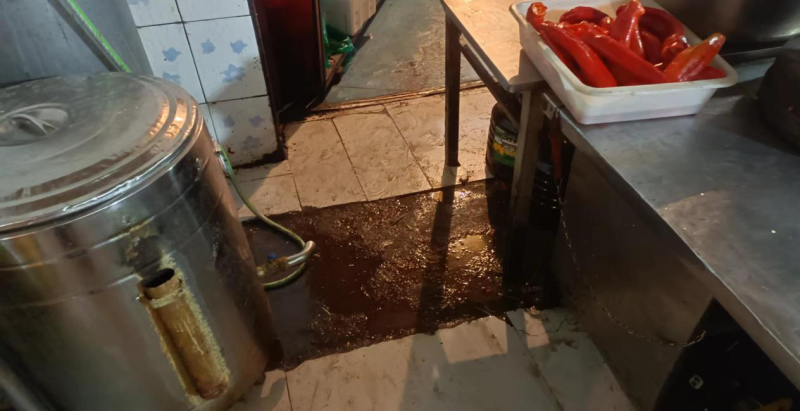 上榜理由:经营场所环境卫生差;从业人员未穿戴洁净的工作衣帽;食品操作区排水沟堵塞,布满油污,未定期清理;餐厨垃圾桶未加盖,垃圾外溢;未配备保洁设施,餐具消毒设施未正常使用;食品原料未分区、分类摆放,食品容器直接放置在地面;冷藏柜内食品原料未分类摆放、生熟未分开、没有明显的标识;“三防”措施落实不到位。